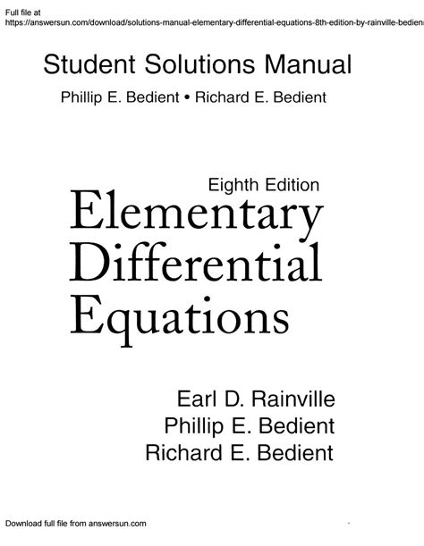 Read Online elementary differential equations rainville bedient solutions manual Doc online is a convenient and frugal way to read elementary differential equations rainville bedient solutions manual you love right from the comfort of your own home. Yes, there sites where you can get Doc "for free" but the ones listed below are clean from viruses and completely legal to use.